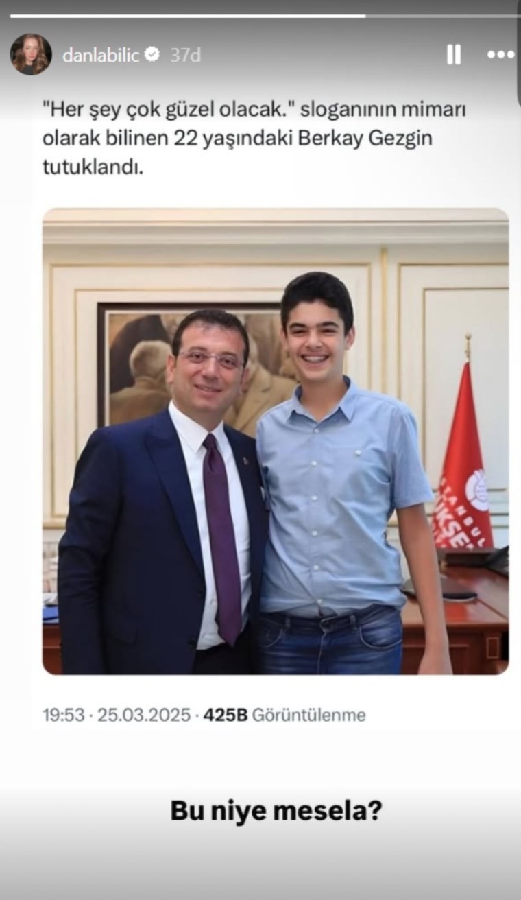 Gezgin’in tutuklanmasının ardından birçok ünlü isim sosyal medyada tepkilerini dile getirdi. Kararın hukuksuz olduğunu savunan kullanıcılar, Berkay Gezgin’in serbest bırakılması için çağrıda bulundu. İşte ünlülerin Berkay Gezgin için yaptıkları paylaşımlar…
