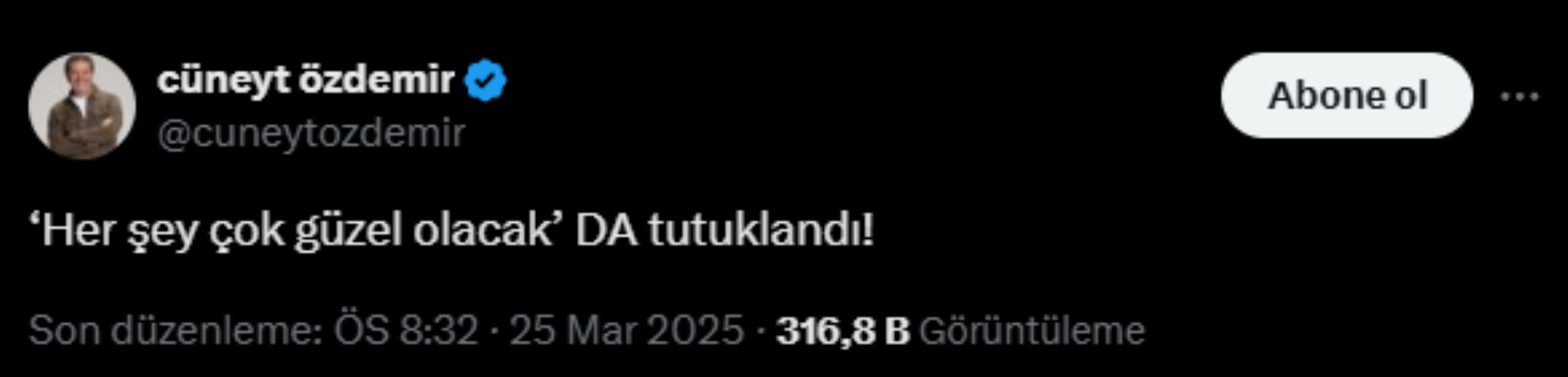 2019 senesindeki seçimlerde Ekrem İmamoğlu’na seslenerek “Ekrem abi, her şey çok güzel olacak!” diyen ve CHP’nin seçim sloganı haline gelen ifadenin sahibi olan Berkay Gezgin, geçtiğimiz saatlerde tutuklandı.