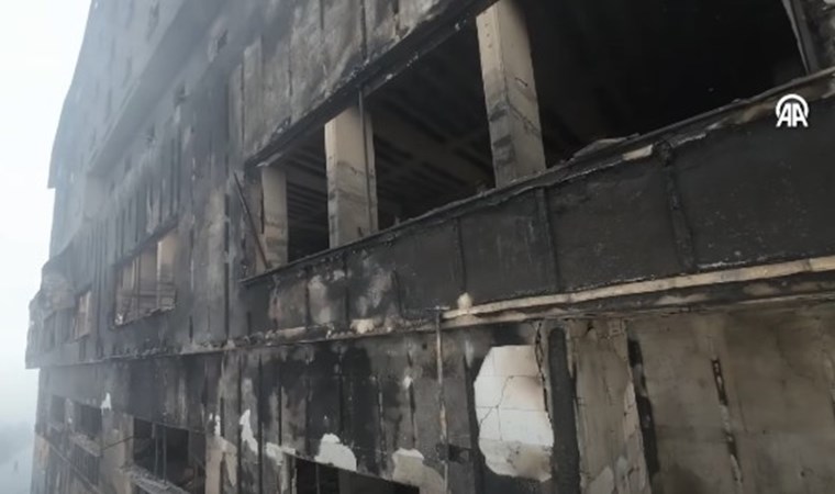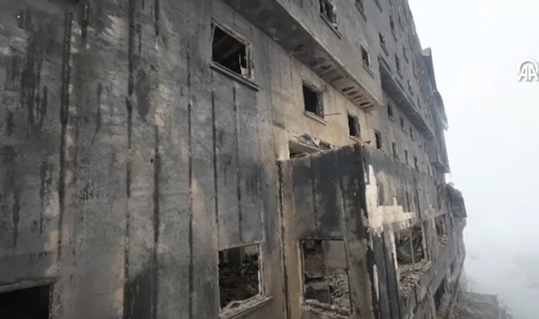 Bolu Kartalkaya’da bulunan ve 76 kişinin hayatını kaybettiği yangın faciasının yaşandığı Grand Kartal Otel’de drone çekimi yapıldı.