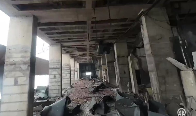 İçeriden ve dışarıdan yapılan çekimlerde, 12 katlı otelin çatısında yangın nedeniyle büyük hasar oluştuğu, camların kırıldığı ve eşyaların tamamen yandığı görüldü.