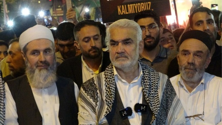 Hizbullah’a yakın Mustazaflar Cemiyeti ise yürüyüş için teşekkür iletisi yayımladı. Âlimler ve Medreseleri Birliği’nin Milli Eğitim Bakanlığı örgütlenmesi olarak bilinen Peygamber Sevdalıları Platformu’nun (PSP) öncülüğünde yapılan yürüyüşe HÜDA PAR Genel Başkanı Zekeriya Yapıcıoğlu da katıldı. Yapıcıoğlu, “Bu toprakların kendilerine vaat edildiğini düşünüyor ve bu uğurda bir vahşet ortaya koyuyorlar. Fakat onların bir hesabı varsa elbette Allah’ın da bir hesabı vardır. Onların gücü kalabalık oluşlarından, ellerindeki silahların ve bombaların çok yıkıcı olmasından, arkalarında ABD gibi süper güç ve orduların durmasından değil; bizim dağınıklığımızdan, birbirimize düşmemizden, vahdeti unutmuş olmamızdandır. Aksa Tufanı bir milat olacak, ümmeti bir araya topladı ve bundan sonra da toplayacak” ifadelerini kullandı.
