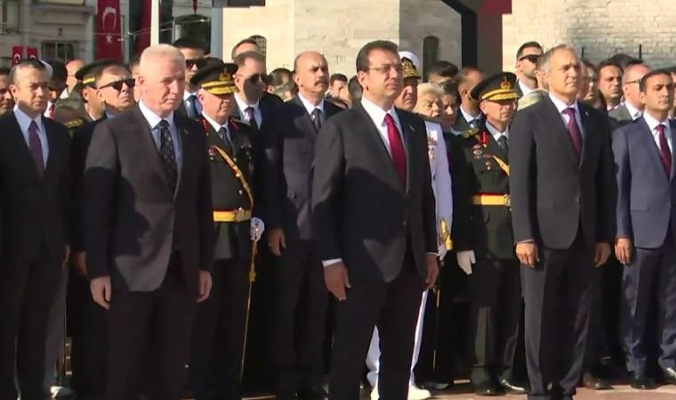 İBB Başkanı Ekrem İmamoğlu, 30 Ağustos Zafer Bayramı nedeniyle Taksim Cumhuriyet Anıtı’nda yapılan çelenk törenine katıldı. Anıta resmi kurum ve siyasi partiler çelenklerini bıraktı.