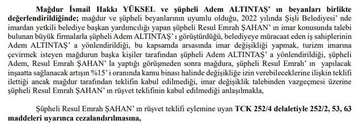 İstanbul Büyükşehir Belediyesi (İBB) iddianamesinde Şişli Belediye Başkanı Resul Emrah Şahan hakkında yöneltilen rüşvet iddiası tartışma yarattı.