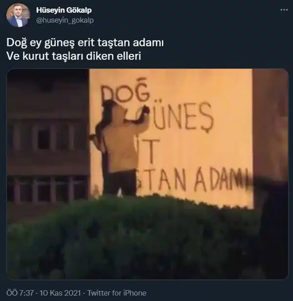 Selçuk Üniversitesi İslami İlimler Fakültesi Öğretim Üyesi Hüseyin Gökalp, 2021 yılında Türkiye Cumhuriyeti’nin kurucusu Mustafa Kemal Atatürk’ün hayatını kaybedişinin 83’üncü yıl dönümünde de, sosyal medya hesabından Atatürk karşıtı ifadelerin yer aldığı bir şiiri paylaşmıştı. Gökalp, X hesabından paylaştığı görselde, Mehmet Akif İnan’ın “Doğ ey güneş erit taştan adamı ve kurut taşları diken elleri” dizilerini duvara yazan bir kişi görülmüştü.