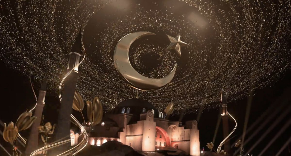Ayrıca fethin sembolleri, gökyüzü video haritalama yöntemiyle Ayasofya Camii’nin üzerinde izleyicilere aktarıldı.