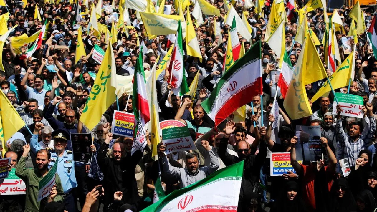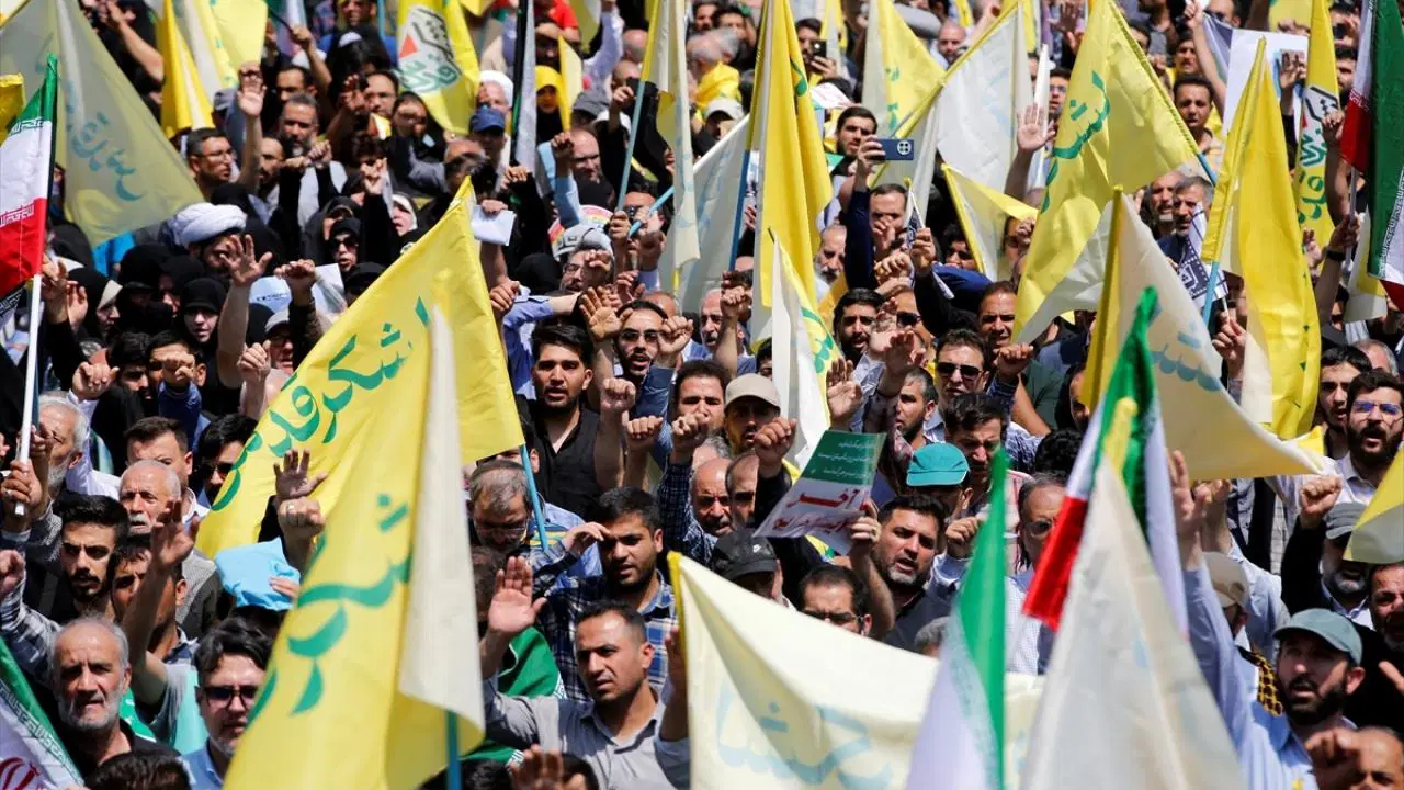 Tahran Üniversitesi yerleşkesinde kılınan cuma namazı sonrasında İnkılap Meydanı’na doğru yürüyüşe geçen grup, İsrail ve ABD aleyhine sloganlar attı.