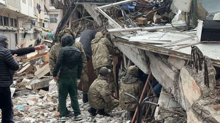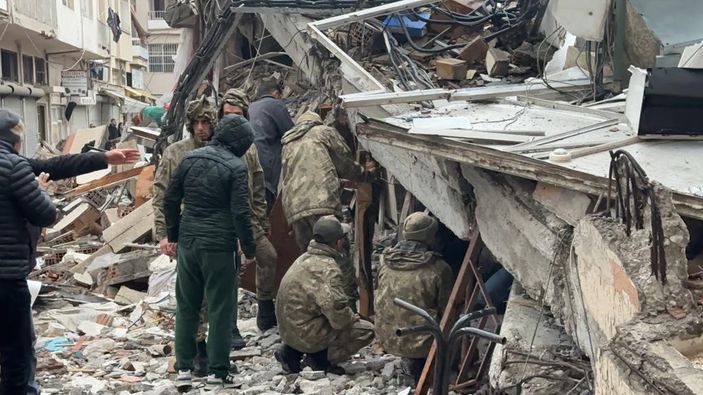 İskenderun’da zelzeleden çabucak sonra saat 08.00’de askerlerin, Çay Mahallesi’nde yıkılan 5 katlı bir binanın başında can kurtarmak için uğraş ettiği imgeler ortaya çıktı.