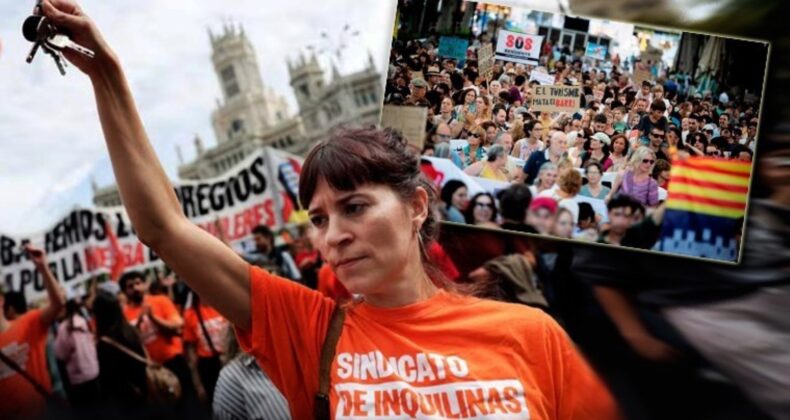 İspanya’nın Madrid ve Barselona gibi büyük şehirlerinde sokaklara dökülen binlerce İspanyol, konut krizini ve yüksek ev kiralarını protesto etti.