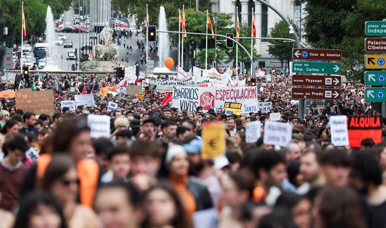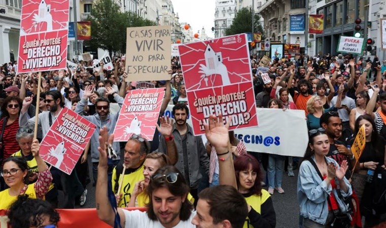 İspanya’nın Madrid ve Barselona gibi büyük şehirlerinde sokaklara dökülen binlerce İspanyol, konut krizini ve yüksek ev kiralarını protesto etti.