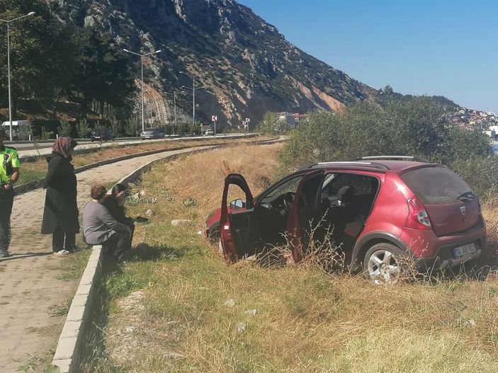 İhbarla birlikte bölgeye polis ekibi sevk edildi. Otomobil sürücüsü ve yanında yolcu olarak bulunan eşi, kazada yara almadan kurtuldu.