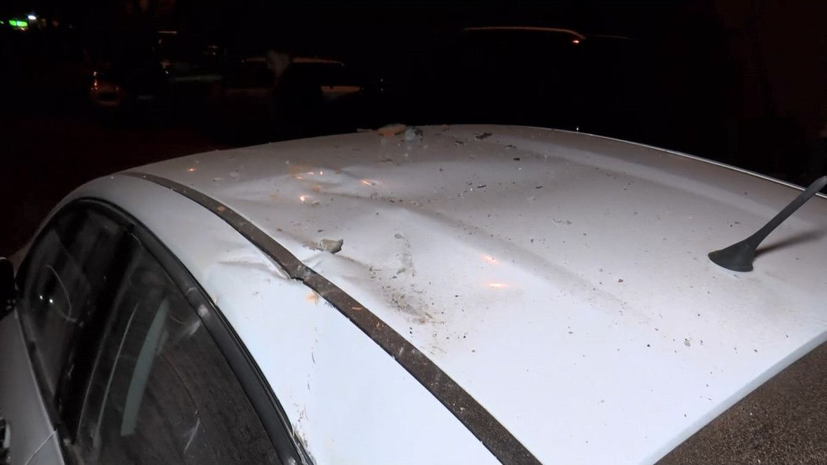 Otomobili zarar gören Behzat Bişkin, “Evde oturuyorduk biz, herhangi bir şey yoktu. Bir gürültü çıktı, cama çıktığımızda arabamızın üzerine bir şey düşmüş gibiydi. Bir araba daha vardı onda fazla bir şey yok ama en büyük hasar bizim araçta. Durum bu, şimdi karakola gideceğiz. Saat 23.00 gibi oldu, yapacak bir şey yok.” dedi.