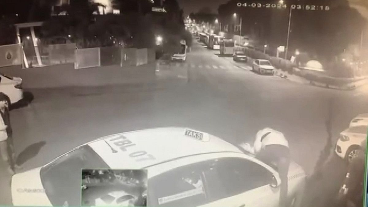Kaza anı taksi durağının güvenlik kamerasına yansıdı. Görüntülerde, motosikletin hızla gelerek taksiye çarptığı ve üzerinde bulunan sürücü ile arkadaşının motosikletten savruldukları anlar yer aldı.
