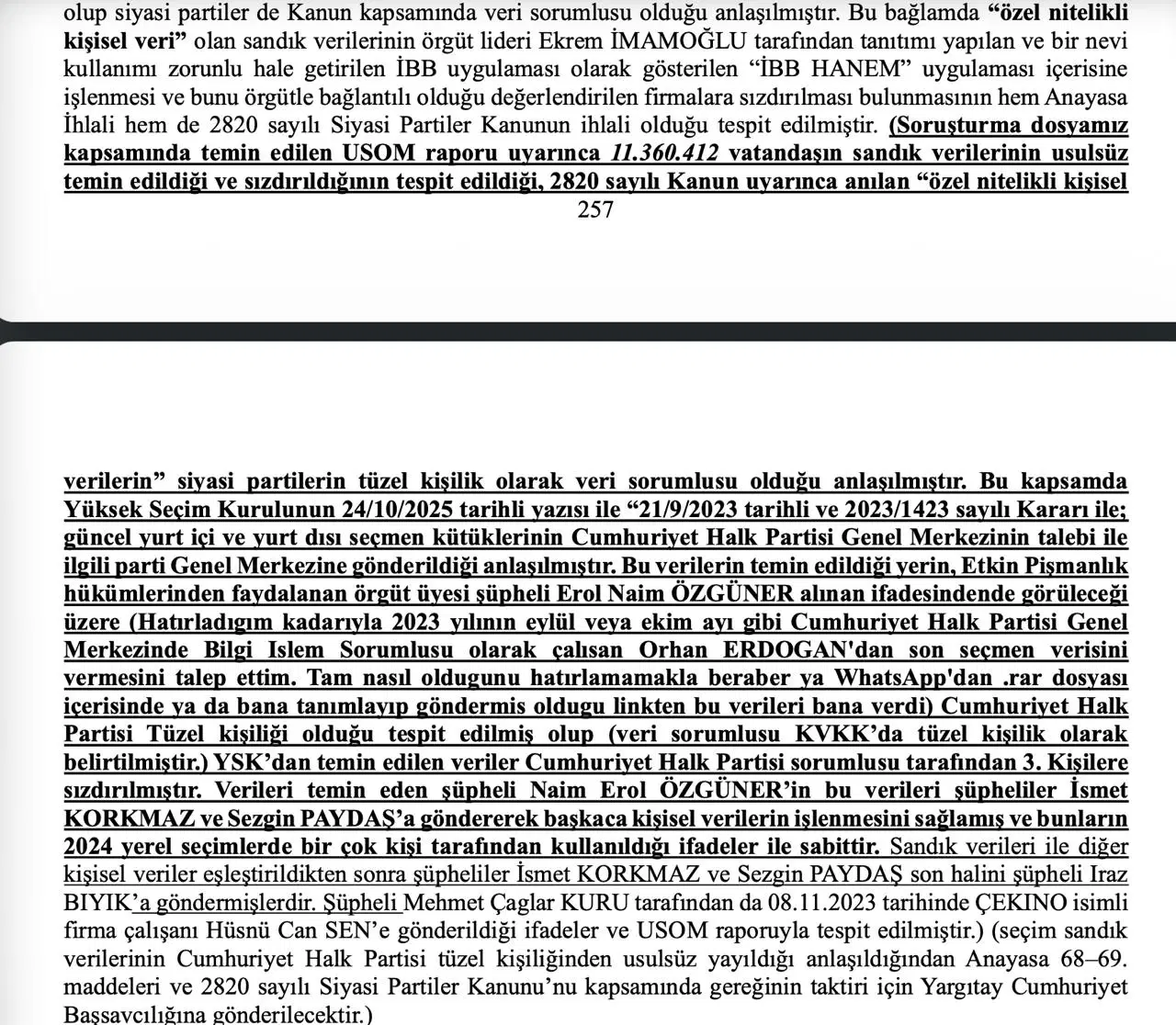 Başsavcılık, bugün duyurduğu İBB iddianamesinin ardından Yargıtay‘a Cumhuriyet Halk Partisi (CHP) hakkında Anayasa’nın 69. maddesince kapatma davasına yönelik bildirimde bulundu.