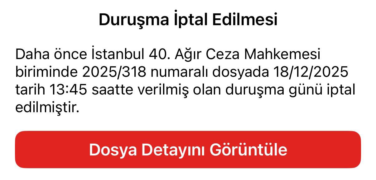 İstanbul Cumhuriyet Başsavcılığı’ndan yapılan bilgi notunda, “İmamoğlu suç örgütüne dair iddianameye ilişkin İstanbul 40. ağır Ceza Mahkemesi henüz tensip işlemi yapmamıştır, yalnızca iddianamenin kabulü kararı verilmiştir. Duruşma tarihi verildiği yönündeki haberler gerçeği yansıtmamaktadır.