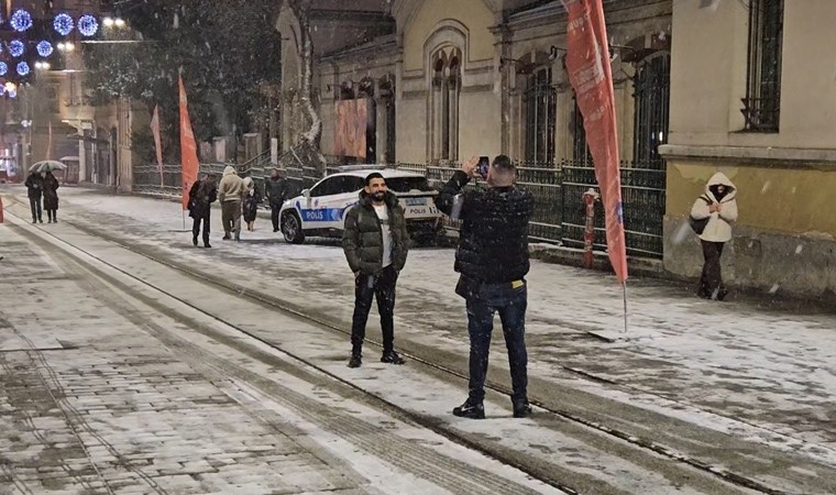 Taksim Meydanı beyaza bürünürken gece 04.00 sıralarında bile yerli ve yabancı turistler fotoğraf çekerek kar yağışını ölümsüzleştirdi.