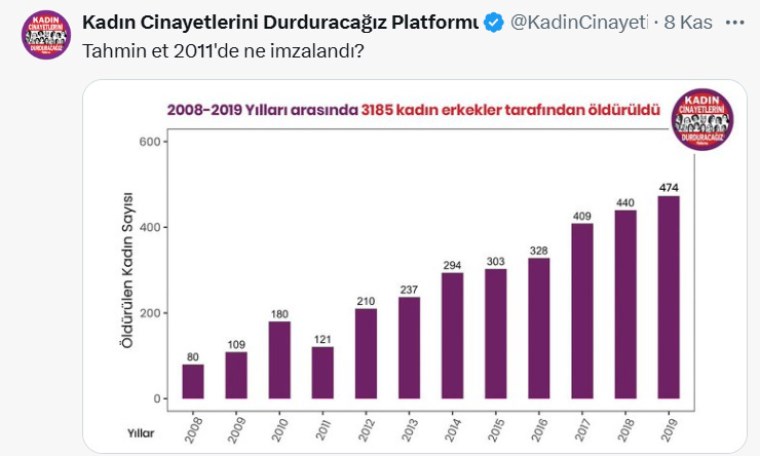 Kadın Cinayetlerini Durduracağız Platformu ise Keşir’in sözlerine sosyal medya üzerinden Türkiye’nin sözleşmeye ilk imzacı olduğu 2011 yılında cinayetlerin azaldığına dikkat çekerek “Tahmin et 2011’de ne imzalandı?” paylaşımında bulundu.