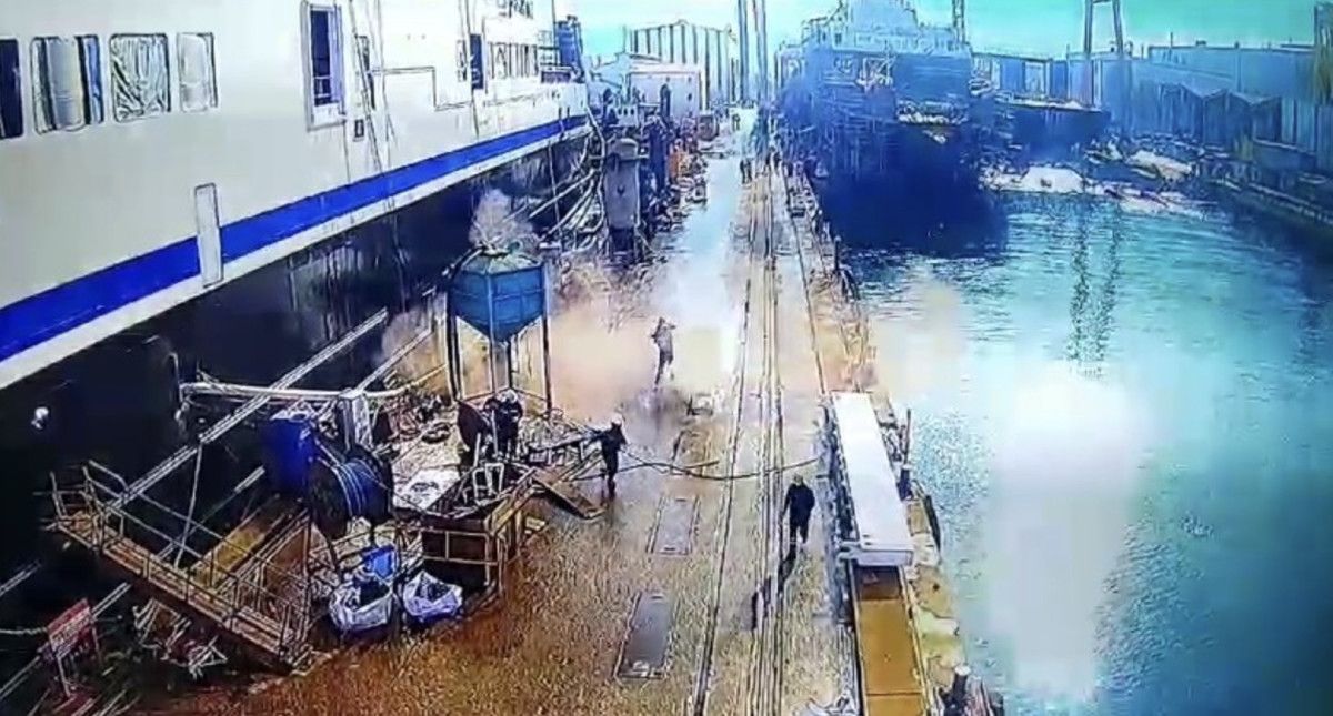 Tersanede işçilerin çalıştığı sırada bilinmeyen bir nedenle tersanenin iskelesinde yer alan gaz kapağı büyük bir gürültüyle patladı.