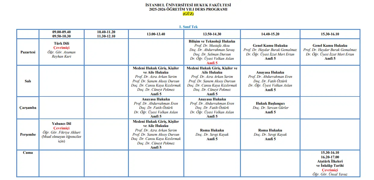 Hukuk Fakültesi’nin 2025-2026 güz programında cuma günlerine ders konulmadı.