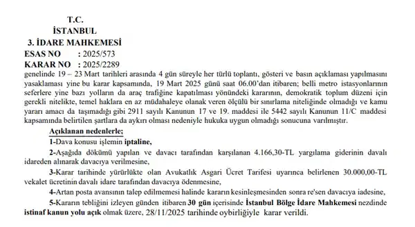 CHP’nin, İstanbul Barosu’nun ve hukuktan yana olan herkesin mücadelesi kazandı. Saraçhane’de yalnızca anayasal hakkını kullandığı için gözaltına alınan, tutuklanan gençlerin yaşadıkları da bu kararla bir kez daha tescillendi: Saray talimatıyla Anayasa’nın 34. maddesini çiğneyip İstanbul trafiğini kilitleyen, metroları kapatan, yürüyüş ve gösteri hakkını gasp eden İstanbul Valiliği’nin kararı hukuksuzdur; o yasakçı zihniyetin talimatıyla Saraçhane’de cop gösteren, gaz sıkan, kelepçe takan zihniyet de hukuksuzdur!”