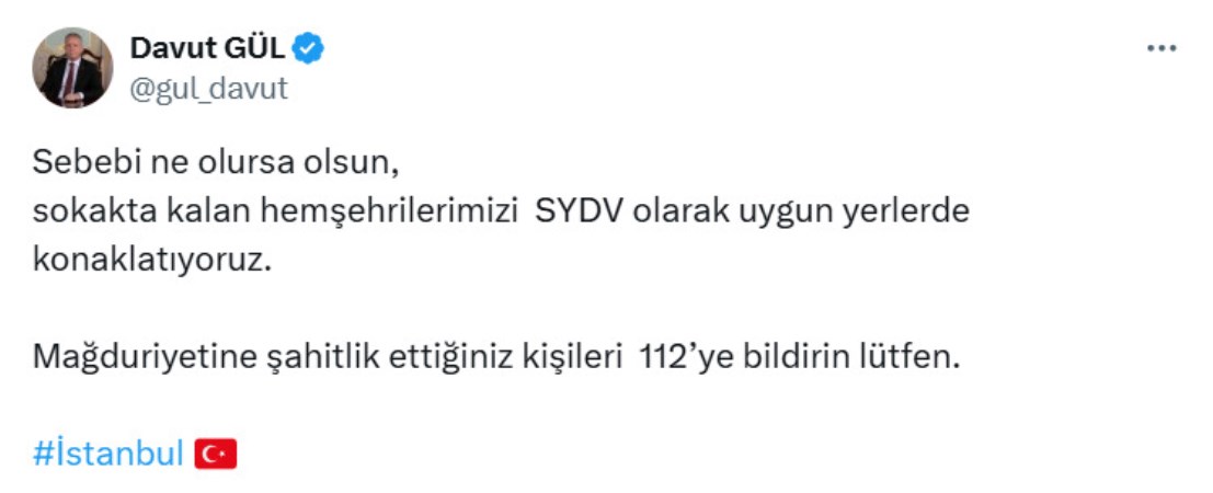 İstanbul Valisi Davut Gül sosyal medya hesabından İstanbullulara çağrı yaptı.