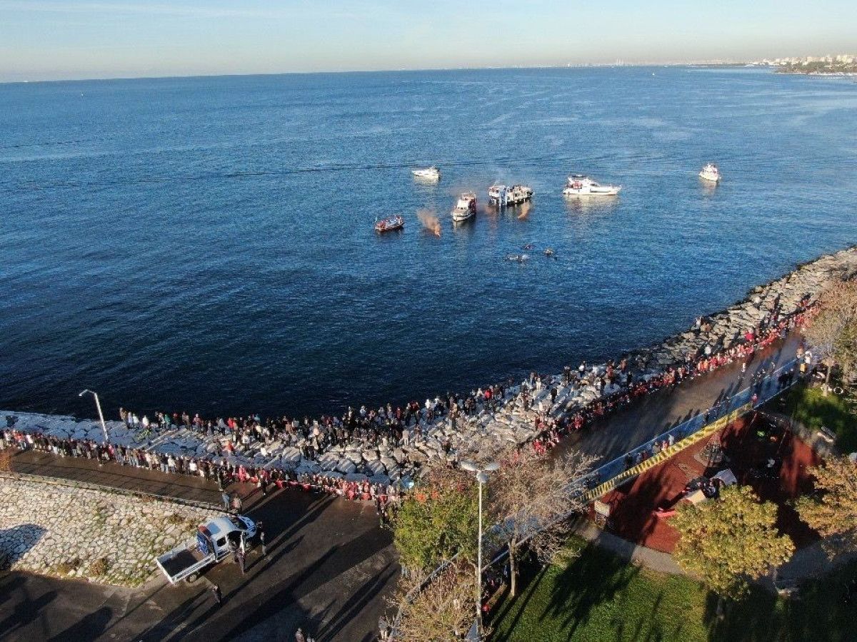 Kadıköy’de 2013’ten bu yana düzenlenen “Ata’ya saygı zinciri”ne denizden tekneler, kanolar ve yelkenliler de katıldı.