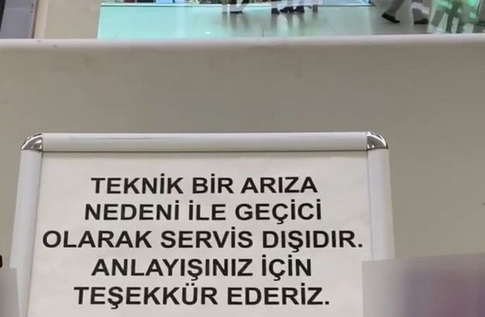 Alışveriş merkezi tarafından olayın yaşandığı alana ‘Teknik bir arıza nedeni ile geçici olarak servis dışıdır. Anlayışınız için teşekkür ederiz’ yazısı asıldı.