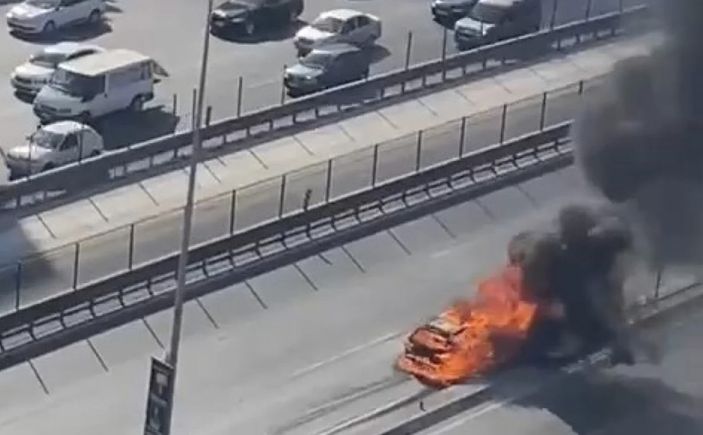 Yaklaşık 5 kilometre ilerledikten sonra D-100 karayolunda araçtan bir anda alevler yükselmeye başladı.