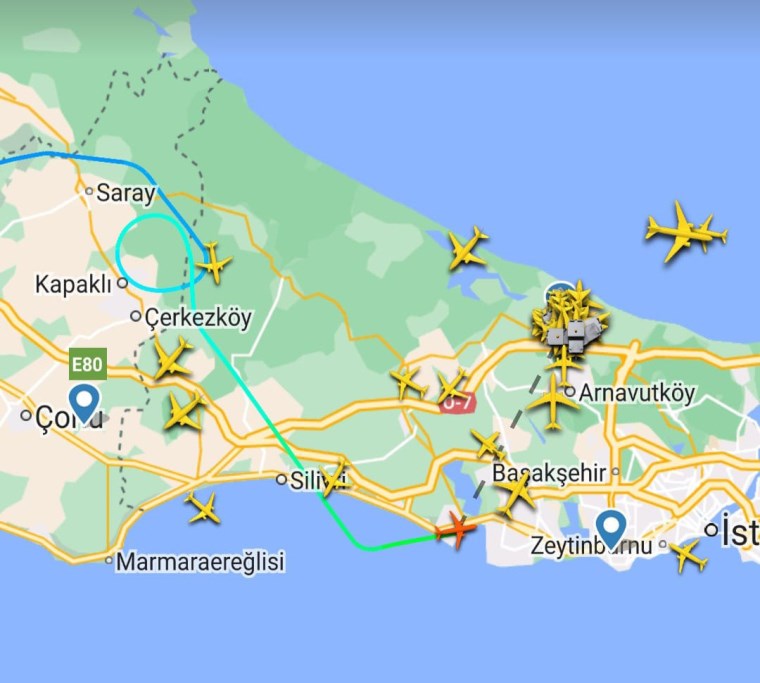 Şiddetli yağmur ve elektrik CB Bulutları nedeniyle İstanbul Havalimanı’na için alçalan uçakların pilotları bulutlardan kaçmak için havada tur atmak zorunda kaldı.