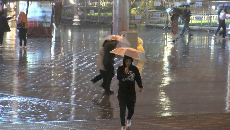Taksim Meydanı’nda yağmurda ıslanmak istemeyenler otobüs duraklarına sığındı. Bazı vatandaşlar ve turistler ise yağmurun altına fotoğraf çektirmeyi ihmal etmedi.