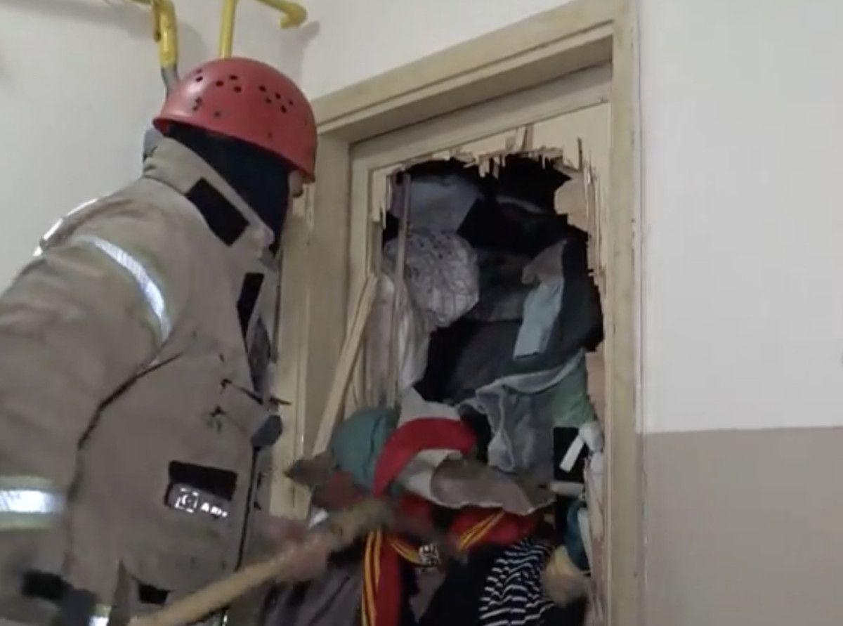 Hasan Ergin’in tek başına yaşadığı daireye gelen ekipler, tavana kadar atık giysi ve eşya depolanan çöp evle karşılaştı.