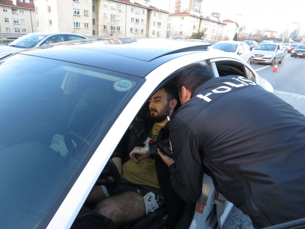 Dubalarla çevrede önlem alan polis, otomobilin kapıları kilitli olduğu için sürücüye ulaşamadı. Ekipler otomobilin camına vurarak sürücüye seslendi.