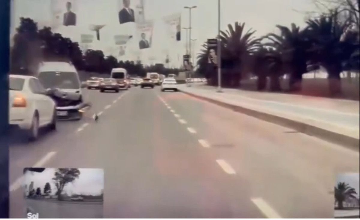 Kazayı fark eden diğer sürücüler, son anda hızlıca şerit değiştirerek büyük bir felaketi önledi.