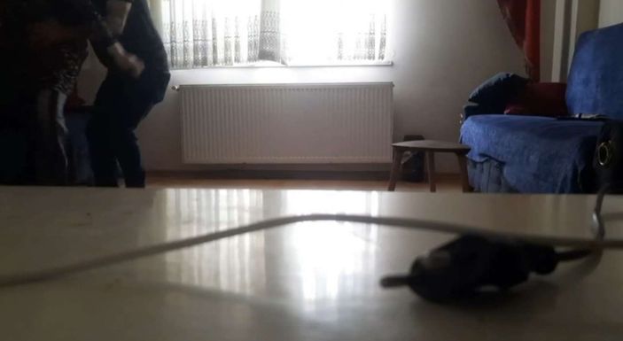 Kiracı, durumdan şüphelenen 14 yaşındaki kızı Eye A.’ya olan biteni anlattı. Kazım T.’nin pazar günü gündüz saatlerinde tekrar eve gelmesi üzerine Eye A., cep telefonu kamerasını açarak, oturma odasında bir bölüme yerleştirdi.