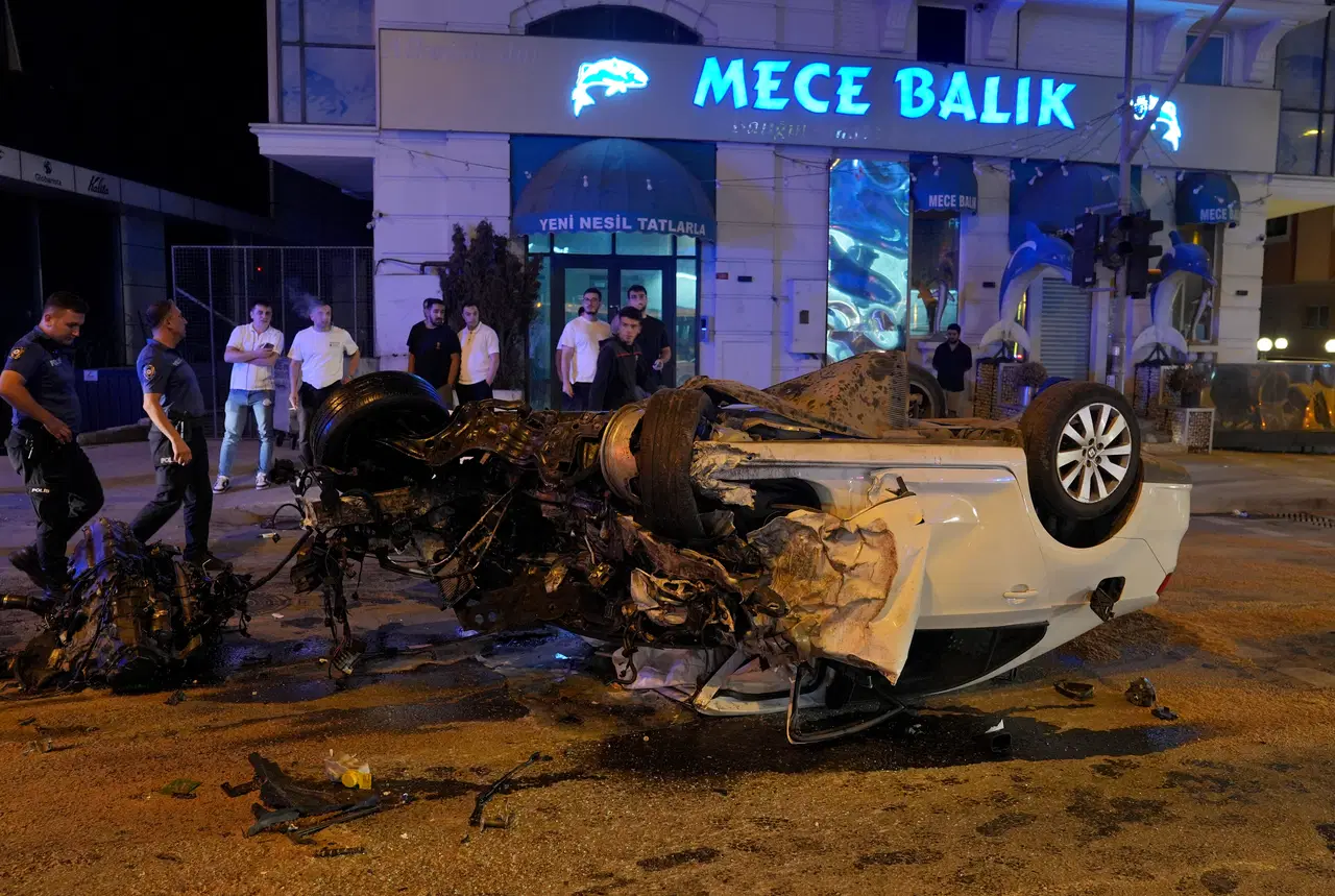 Çarpmanın etkisiyle kontrolden çıkan otobüs bir alışveriş merkezinin bahçe duvarına, otomobil ise refüje çarptıktan sonra diğer şeride geçip ters döndü.