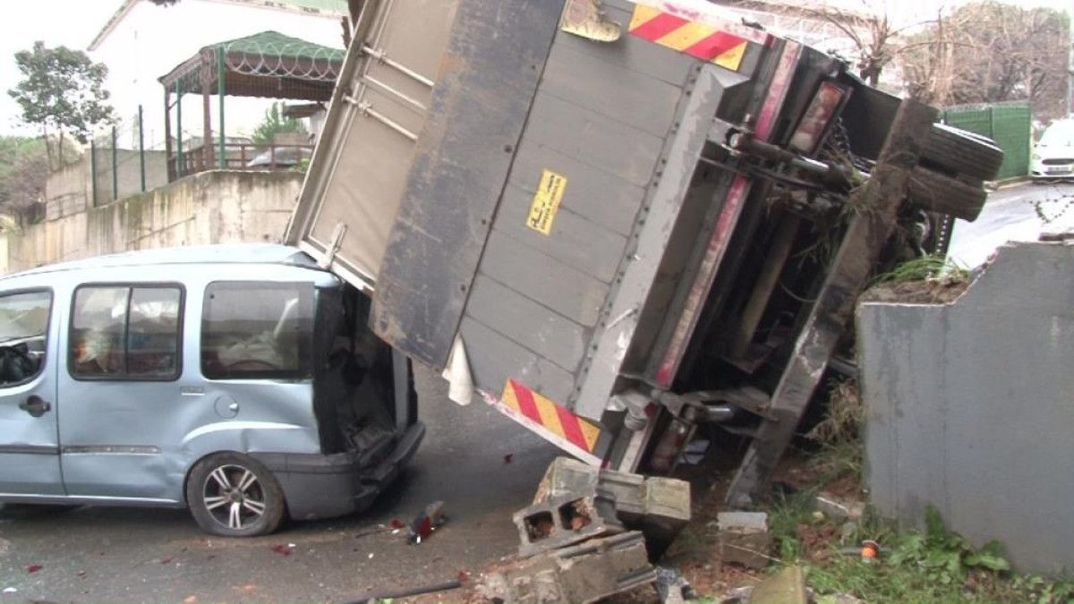 İstanbul’un İlçesinde bulunan Barbaros Mahallesi Ezgi Sokak üzerinde Hamza Öztürk hakimiyetindeki İveco markalı 45 PY 472 plakalı kamyon, yokuşu çıktığı sırada freni patladı.