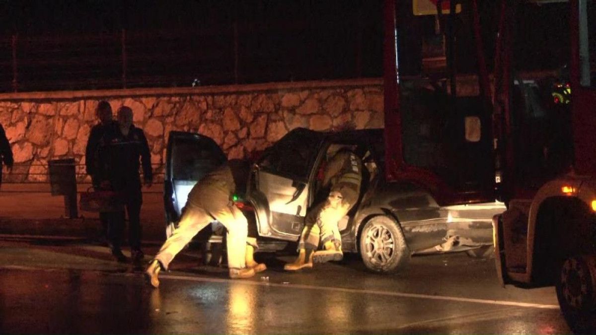 Virajı alamayan otomobil önce bariyerlere çarptı, ardından metrelerce sürüklendi.