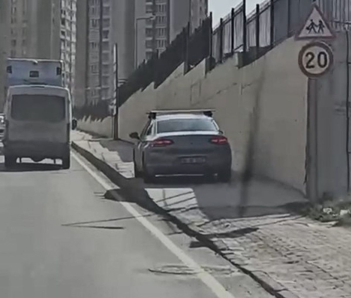 20 Şubat Salı günü yine aynı bölgede kaydedilen görüntülerde ise, seyir halinde olan sürücünün trafikten kaçmak isterken ters yönde kaldırımdan gittiği görüldü.