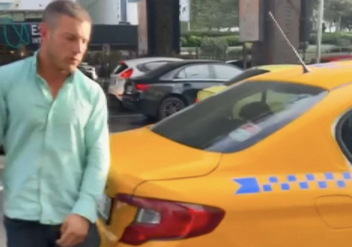 Görüntülerde taksicinin araçtan indikten sonra da tartışmaya devam ettiği turist çifte “1 saat 30 dakika. 40 dakika havalimanı. Anladın mı beni ?” dediği de görülüyor.