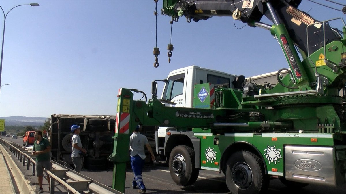 İstanbul’da, TEM Otoyolu’nun Büyükçekmece mevkisi Edirne istikametinde saat 14.00 sıralarında kamyonet devrildi.