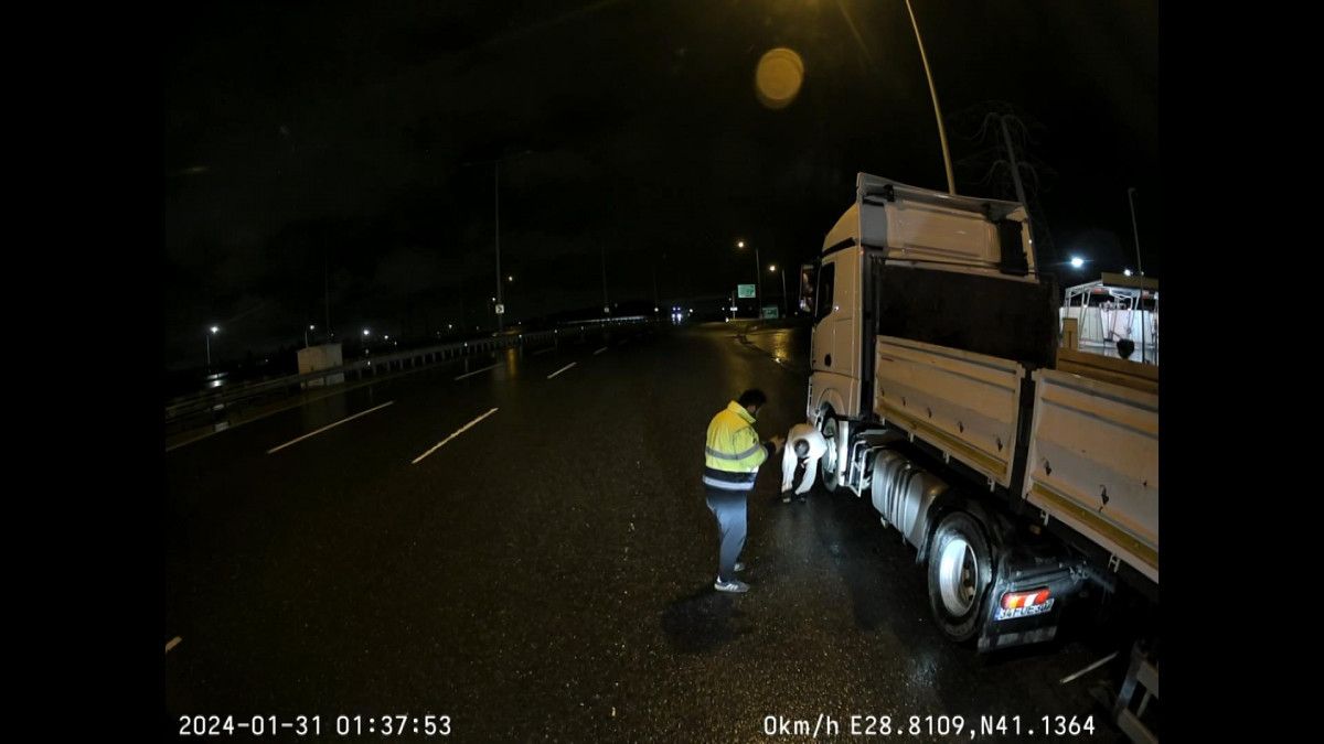 Gece saatlerinde tır şoförü Ali Yeşilyurt, yol kenarına aracını park ederek, uyudu.