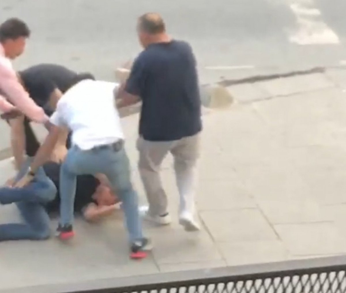 Fazla ilerleyemeden yere kapaklanan adam, 3 şüpheli tarafından darbedildi. Bu sırada tesadüfen olay yerinden geçen polis ekipleri, olaya müdahale ederek tarafları ayırdı.