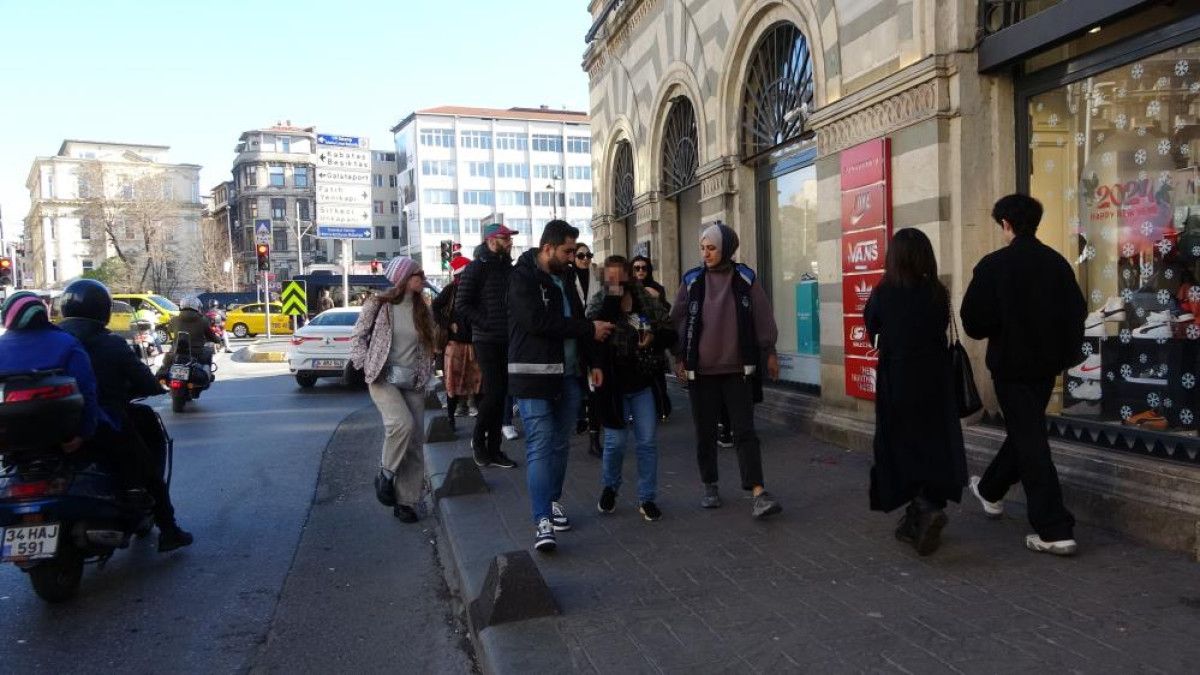 Kadınların vatandaşlardan para istediği anlar görüntülendi. Yakalanan kadınlar, Beyoğlu Zabıta Müdürlüğüne götürüldü.
