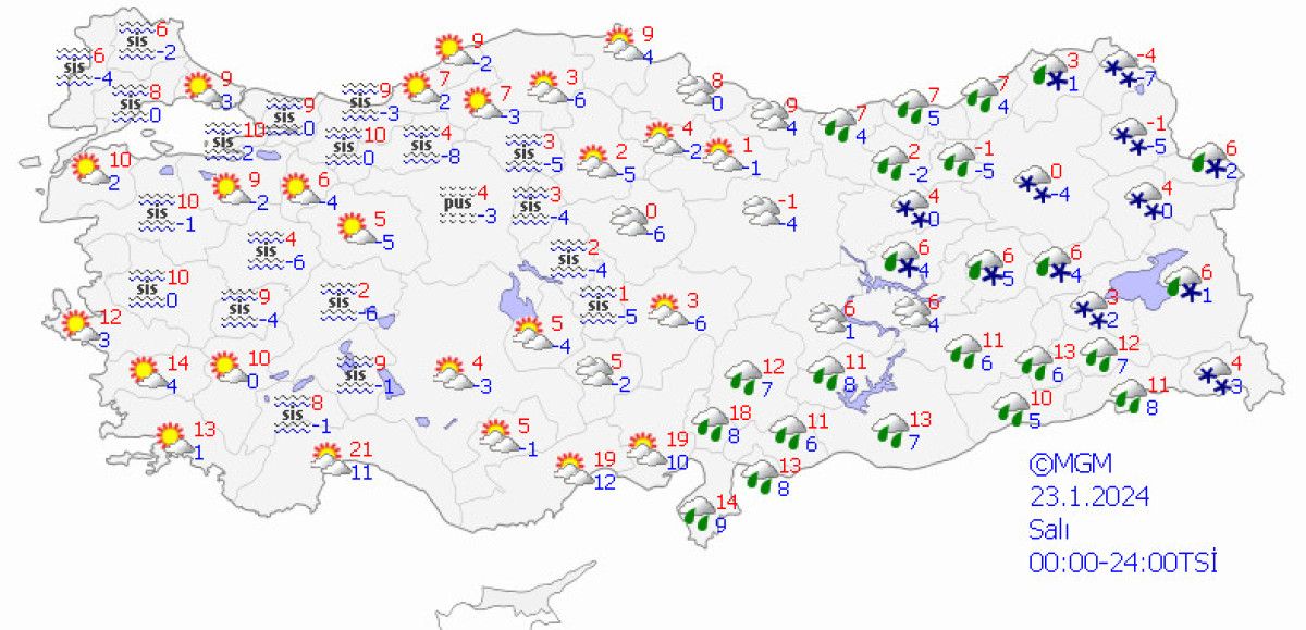 Buna göre kentte 22 Ocak Pazartesi günü kar yağışının etkili olması bekleniyor.