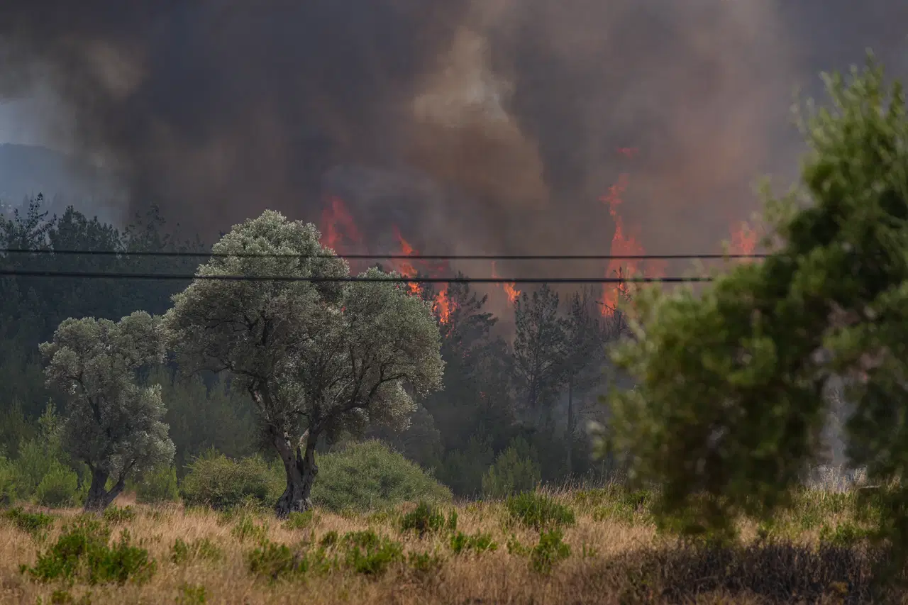 İhbar üzerine bölgeye, İzmir Orman Bölge Müdürlüğüne bağlı 4 uçak, 7 helikopter, 25 arazöz, 7 su ikmal aracı ve 4 dozer sevk edildi.