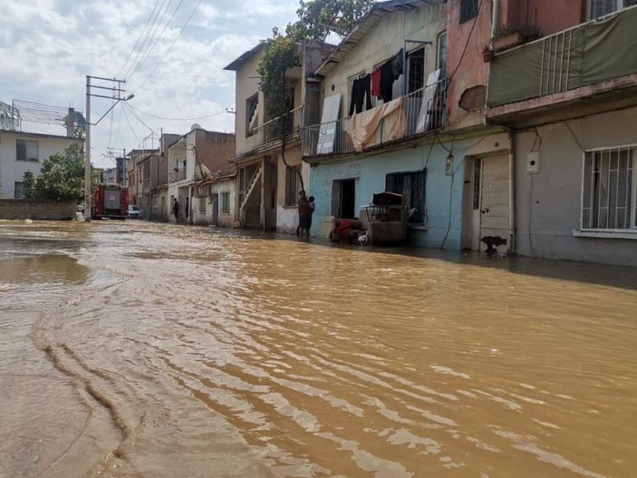 Evinin bahçesi sular altında kalan İsa Gençler, “Ana su borusu patlamış. Evimin bahçesi su içerisinde. Bu kadar ilgisizlik olmaz. İZSU’ya 3 sefer telefon ettim. Bu İZSU’nun genel müdürü, şefi yok mu? Bir telefonla ana boruyu kapat. Yazık günah değil mi?” dedi.