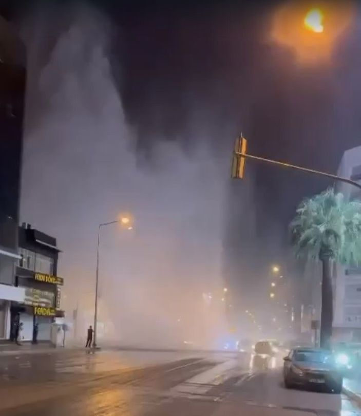 İzmir’in Konak ilçesinde İzmir Su ve Kanalizasyon İdaresi Genel Müdürlüğüne (İZSU) ait su borusu henüz belirlenemeyen nedenle patladı.