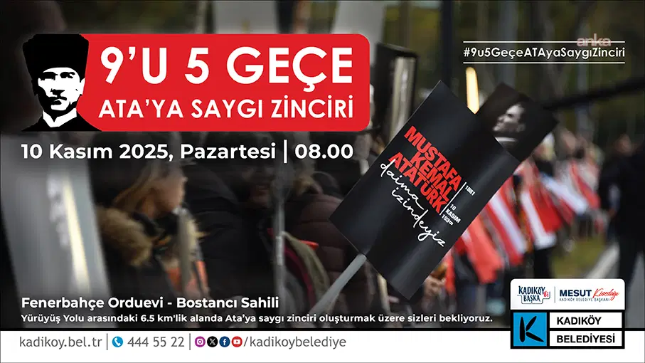 Gazi Mustafa Kemal Atatürk, ölümünün 87’nci yılında, Kadıköy Belediyesi ve Kadıköy Belediyesi Gönüllüleri tarafından Fenerbahçe Orduevi ile Bostancı arasındaki sahil yolunda 6,5 kilometrelik alanda oluşturulacak “Ata’ya Saygı Zinciri” ile anılacak.