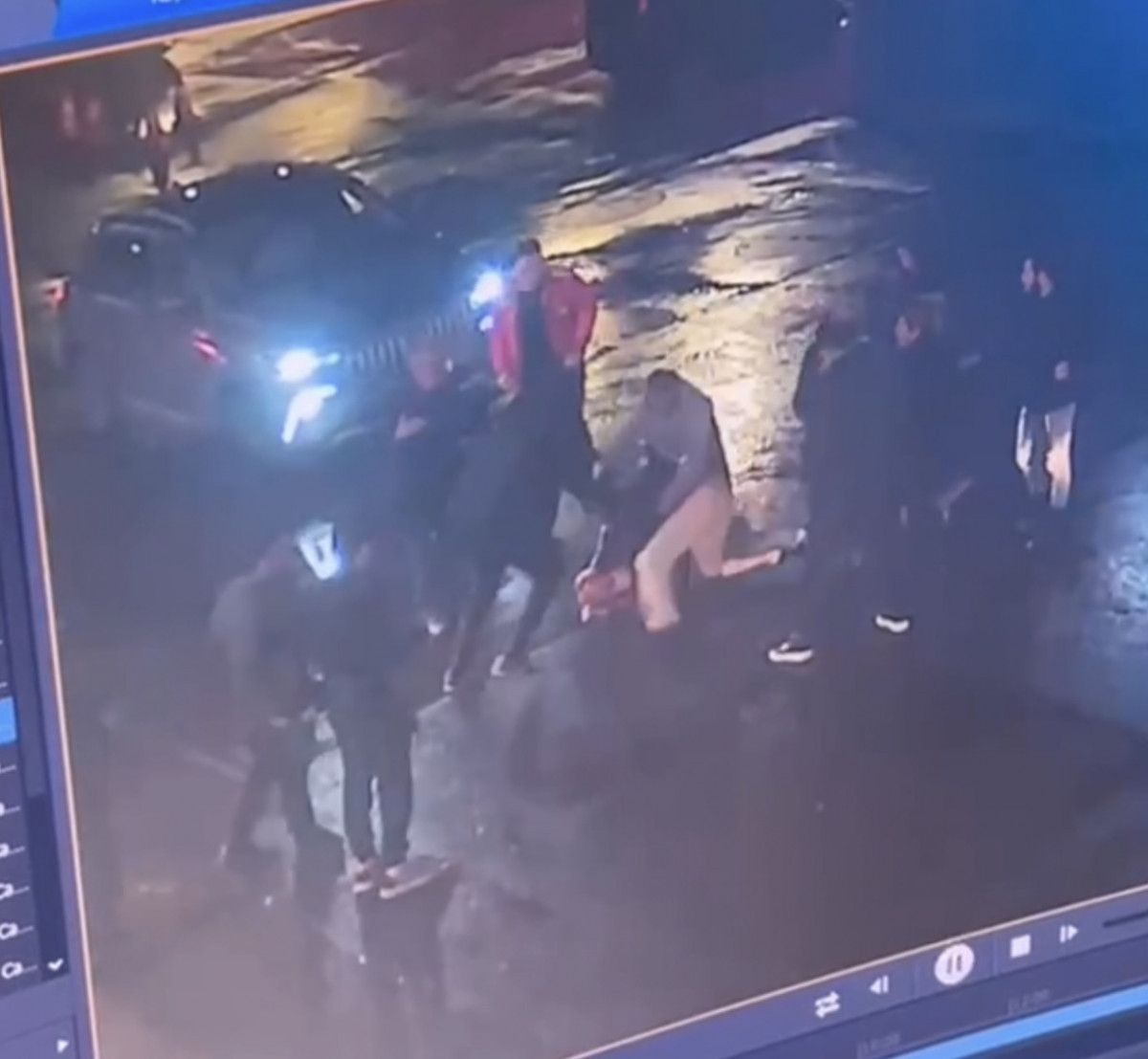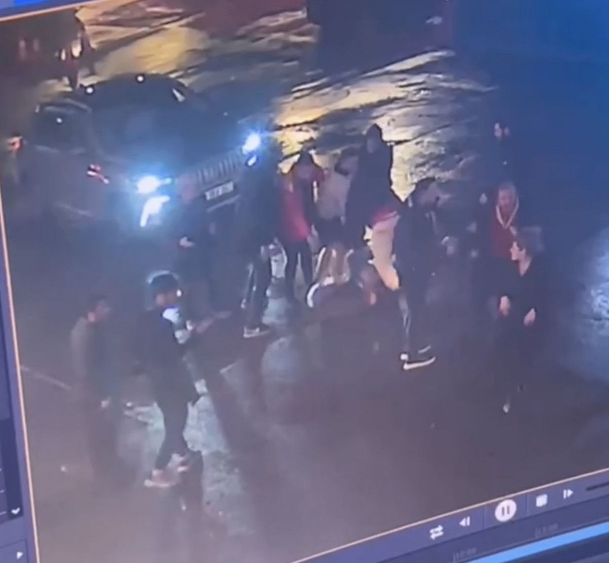 Tekme tokat devam eden kavgada taraflar, yere düşerek birbirlerine vurmaya devam etti.