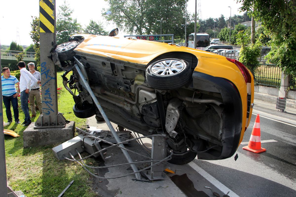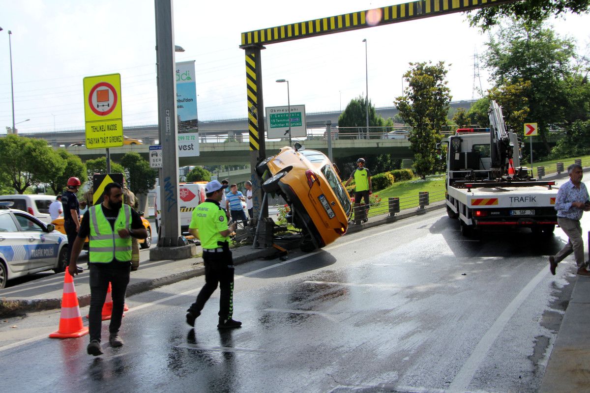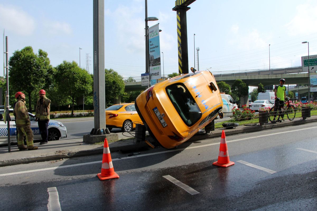 İstanbul’un Kağıthane ilçesi imrahor Caddesi Kağıthane Tünel girişinde Caner Karakanat’ın kullandığı taksi, yolun ıslak olması nedeniyle kaydı.