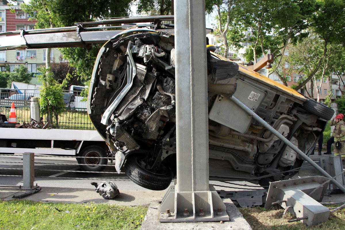 Araç sahibi Mahsun Kesim “Yoldaki sulamayı zaten görüyorsunuz. Şoför kontrolü kaybediyor. Direk bariyere çıkıp bu hale geliyor. Yoldaki sulama nedeniyle kaynaklanan bir durum” diye konuştu.